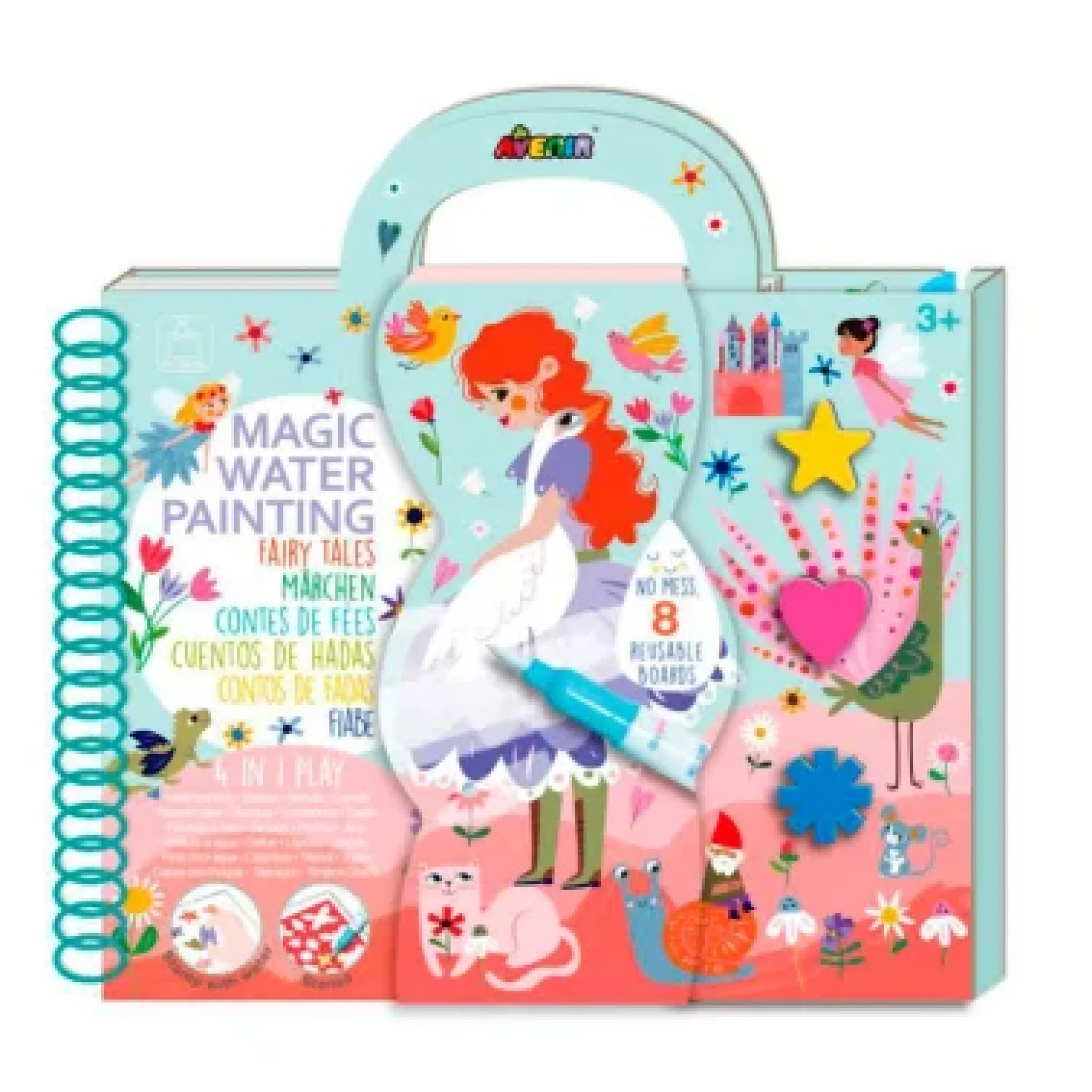 Lleva la diversión de la pintura con agua a cualquier lugar con este libro mágico de pintura con agua. Cada libro incluye superficies reutilizables para colorear, múltiples actividades divertidas y un bolígrafo de agua recargable. Simplemente llena el bolígrafo con agua del grifo, luego dibuja para revelar loscolores en las páginas. Los colores desaparecerán cuando el agua se seque, ¡y podrás empezar de nuevo, como por arte de magia! Para duplicar la diversión, hemos añadido muchas actividades que inspiran el aprendizaje, la exploración y la imaginación de los niños. Medidas: 300 x 20 x 295 mm. Modelo: cuentos de hadas.