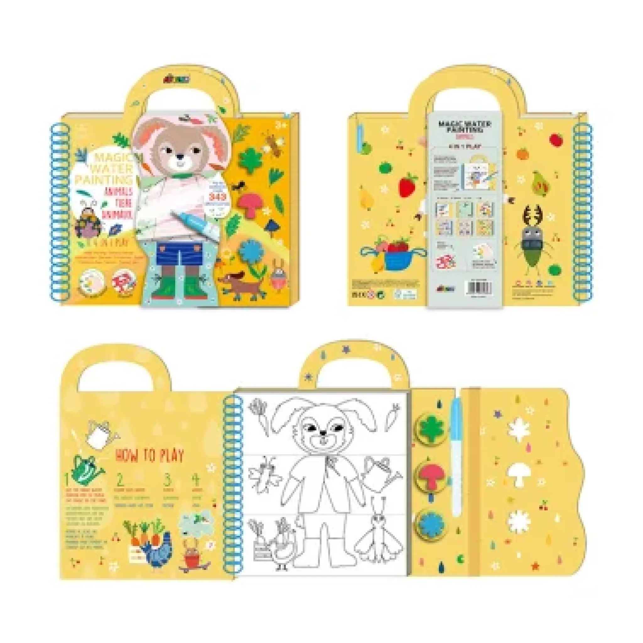 Lleva la diversión de la pintura con agua a cualquier lugar con este libro mágico de pintura con agua. Cada libro incluye superficies reutilizables para colorear, múltiples actividades divertidas y un bolígrafo de agua recargable. Simplemente llena el bolígrafo con agua del grifo, luego dibuja para revelar loscolores en las páginas. Los colores desaparecerán cuando el agua se seque, ¡y podrás empezar de nuevo, como por arte de magia! Para duplicar la diversión, hemos añadido muchas actividades que inspiran el aprendizaje, la exploración y la imaginación de los niños. Medidas: 300 x 20 x 295 mm. Modelo: animales.